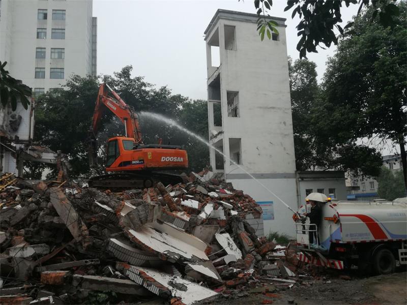 在拆除過(guò)程中,我公司嚴格要求施工單位切實(shí)做好相關(guān)安全防護、環(huán)保規定的一切要求,對安全、環(huán)保問(wèn)題落實(shí)到位。到目前為止,已將內科大樓拆除到室外正負為零。后續工作預計在9月底全部完成。