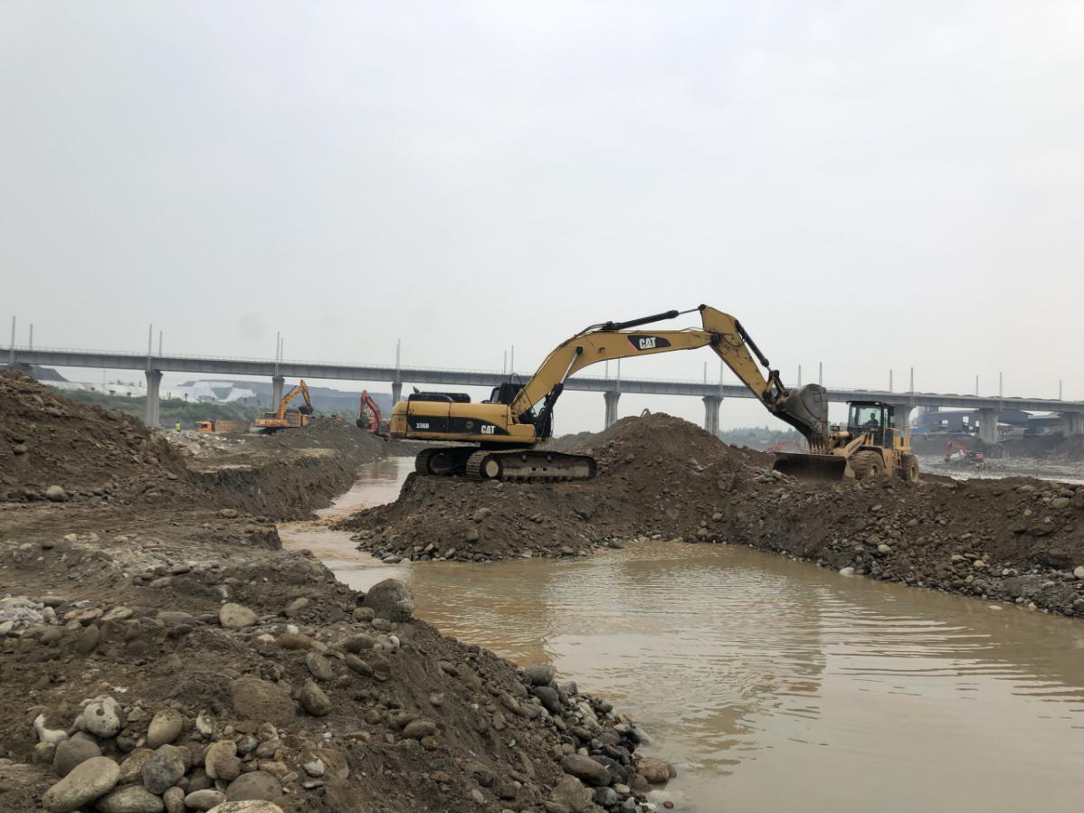 本次應急搶險施工,金申建筑公司負責修復馬尾河高新區及年畫(huà)村段、射水河清道大橋下游、石亭江賀家堰段、綿遠河楠木溝及成南鐵路段水毀部分,預計修復加固河堤約1600米。