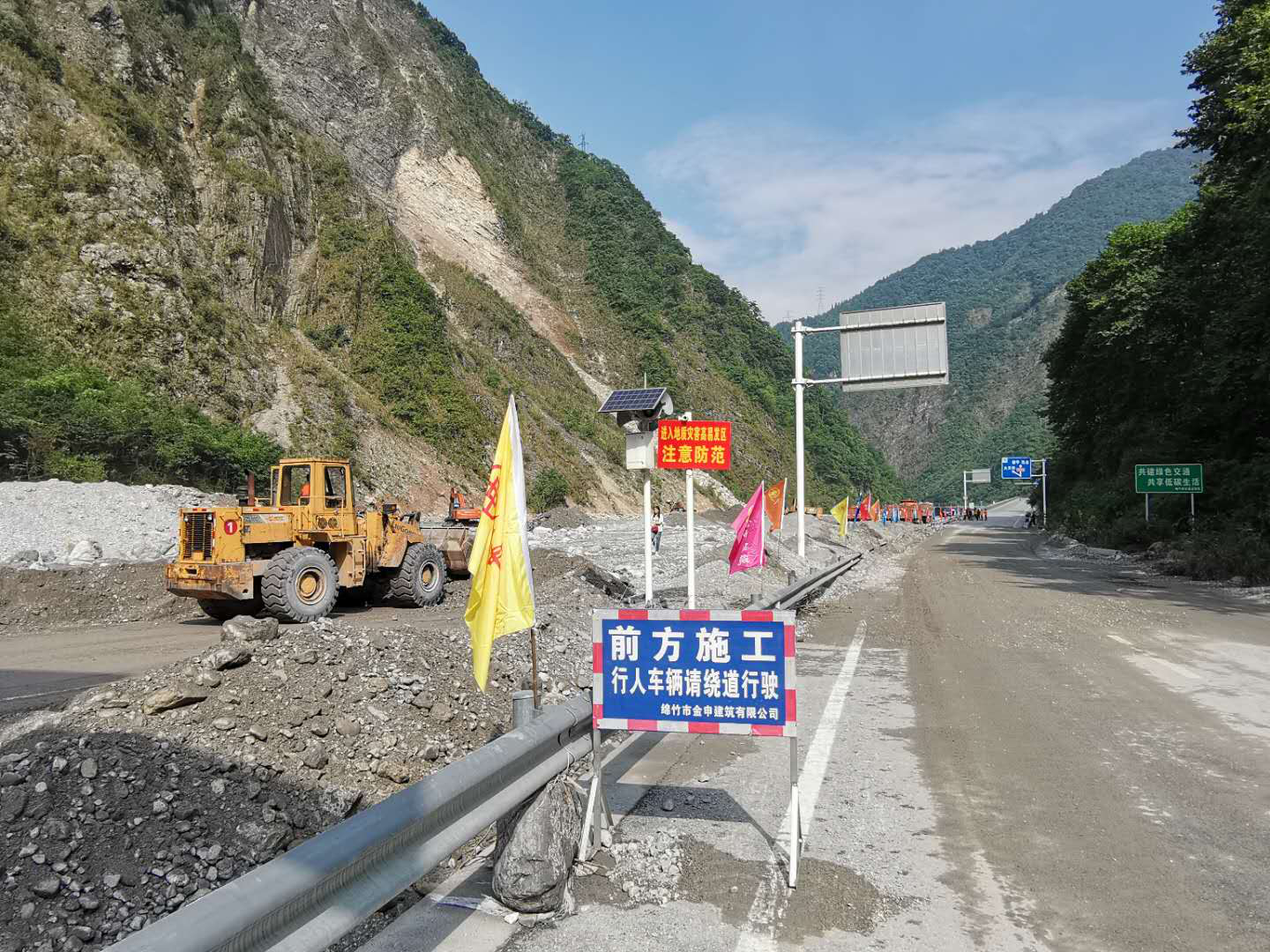 為防止次生災害發(fā)生,我公司在各個(gè)險情點(diǎn)落實(shí)專(zhuān)人值守。在半幅通行路段,設置醒目警示標志,積極開(kāi)展搶通保暢工作。以災情為命令,用實(shí)際行動(dòng)踐行金申建筑人的初心和使命,確保人民的財產(chǎn)和生命安全。