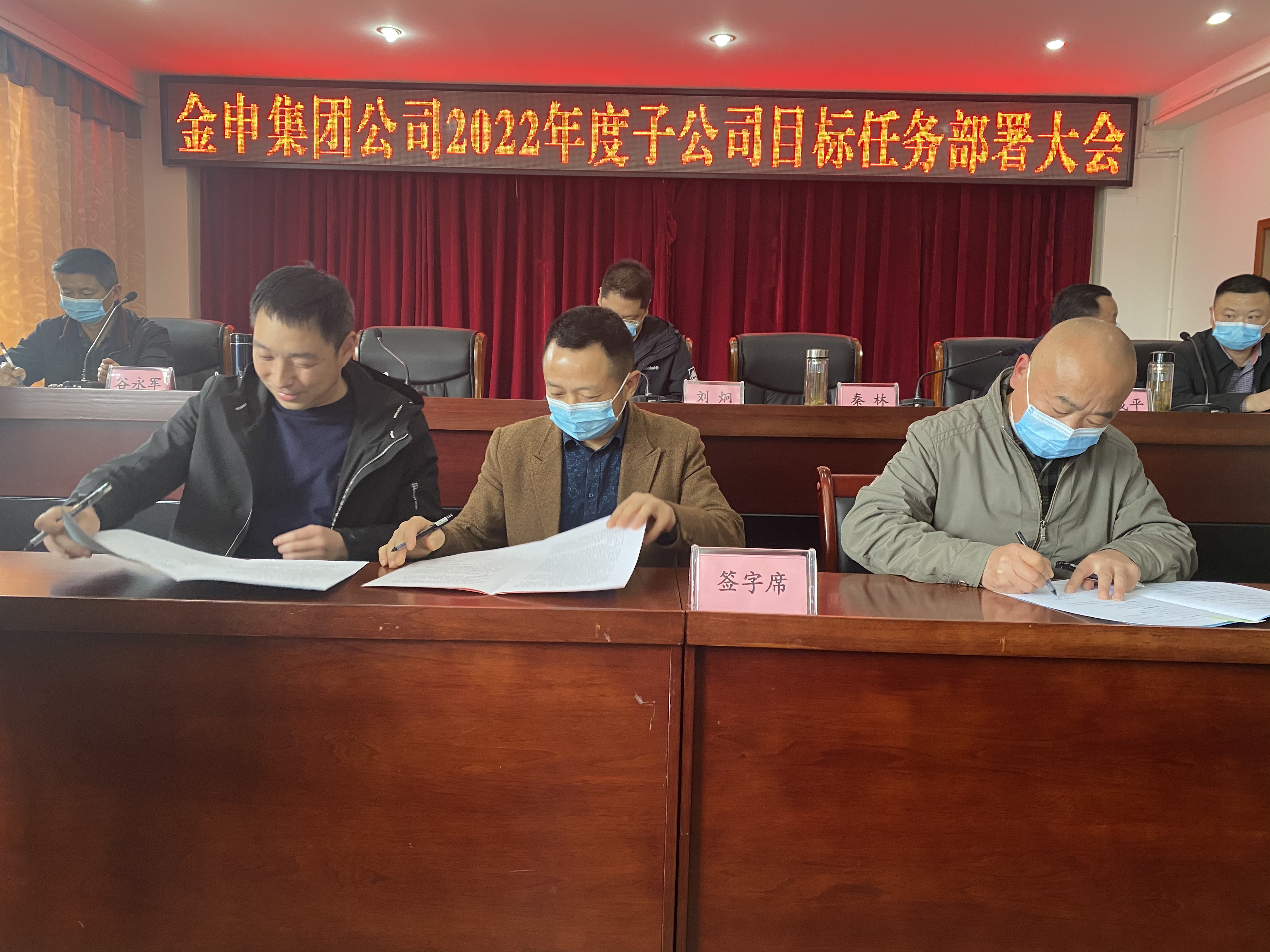 集團領(lǐng)導班子分別與子公司負責人簽訂2022年目標管理責任書(shū)、環(huán)保安全生產(chǎn)目標責任書(shū)。