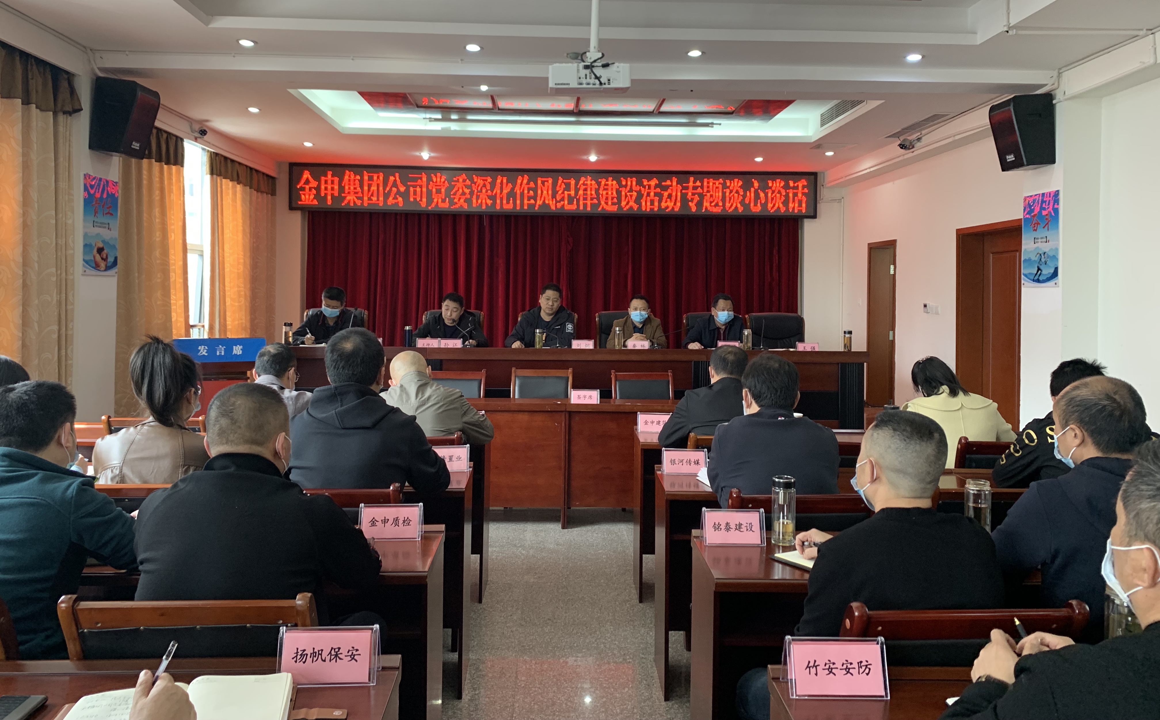 2022年4月2日,綿竹市金申投資集團有限公司召開(kāi)2022年度子公司目標任務(wù)部署大會(huì )暨深化作風(fēng)紀律建設活動(dòng)專(zhuān)題談心談話(huà),集團領(lǐng)導班子、中層副職及以上人員參加會(huì )議。