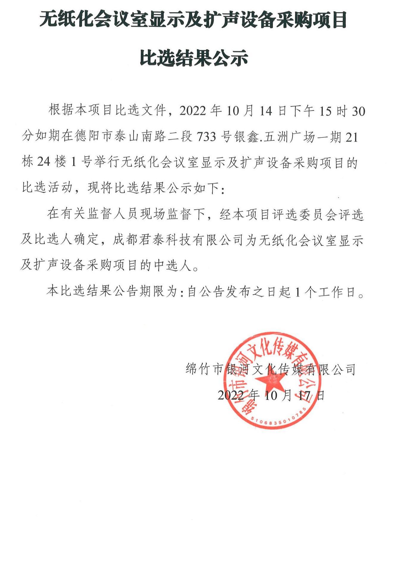 無(wú)紙化會(huì )議室顯示及擴聲設備采購項目比選結果公示