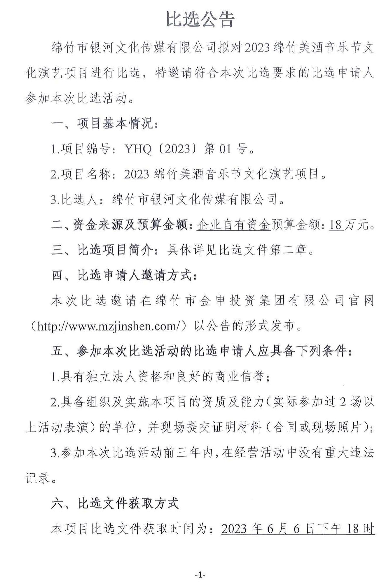 “2023綿竹美酒音樂(lè )節”文化演藝項目比選公告