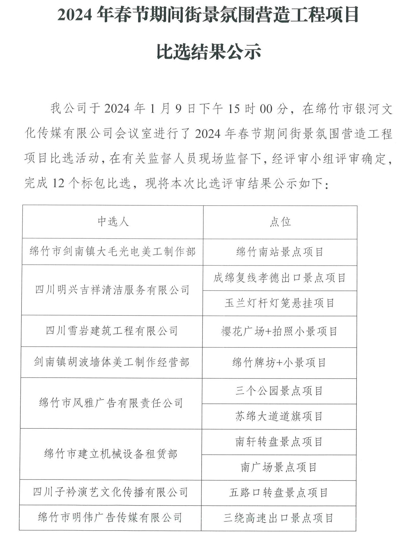 春節期間街景氛圍營(yíng)造工程項目比選結果公示
