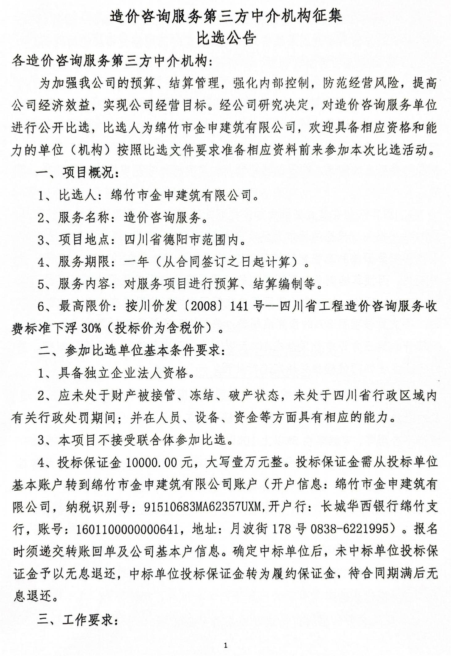 造價(jià)咨詢(xún)服務(wù)第三方中介機構征集比選公告