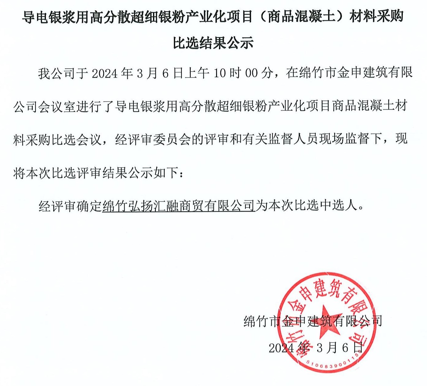 導電銀漿用高分散超細銀粉產(chǎn)業(yè)商品混泥土比選結果公示