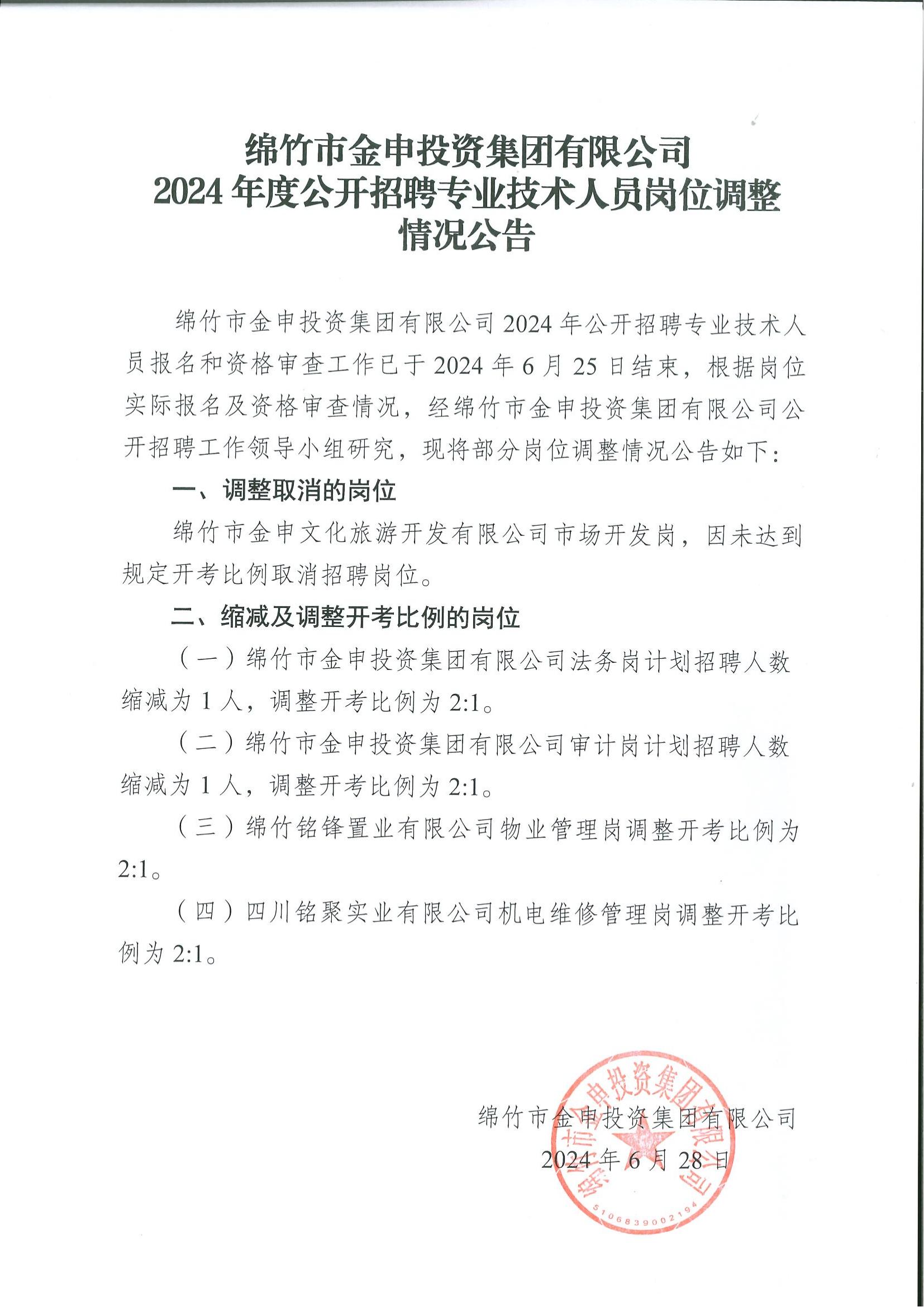 金申集團2024年度公開(kāi)招聘專(zhuān)業(yè)技術(shù)人員崗位調整情況公告