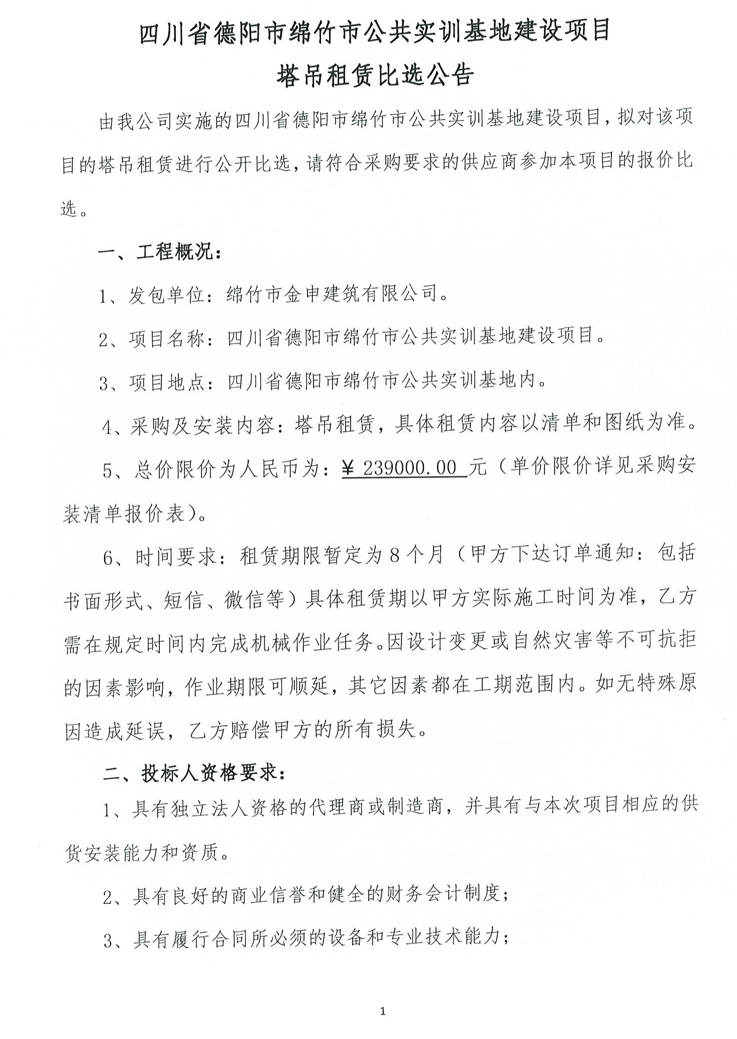 綿竹市公共實(shí)訓基地建設項目塔吊租賃比選公告