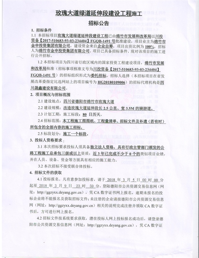 玫瑰大道綠道延伸段建設工程施工招標公告
