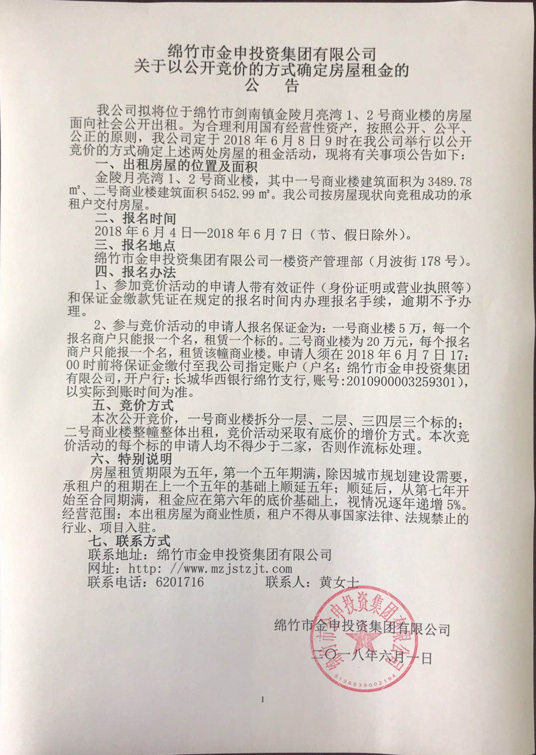 金陵月亮灣商業(yè)樓公開(kāi)競價(jià)招租公告