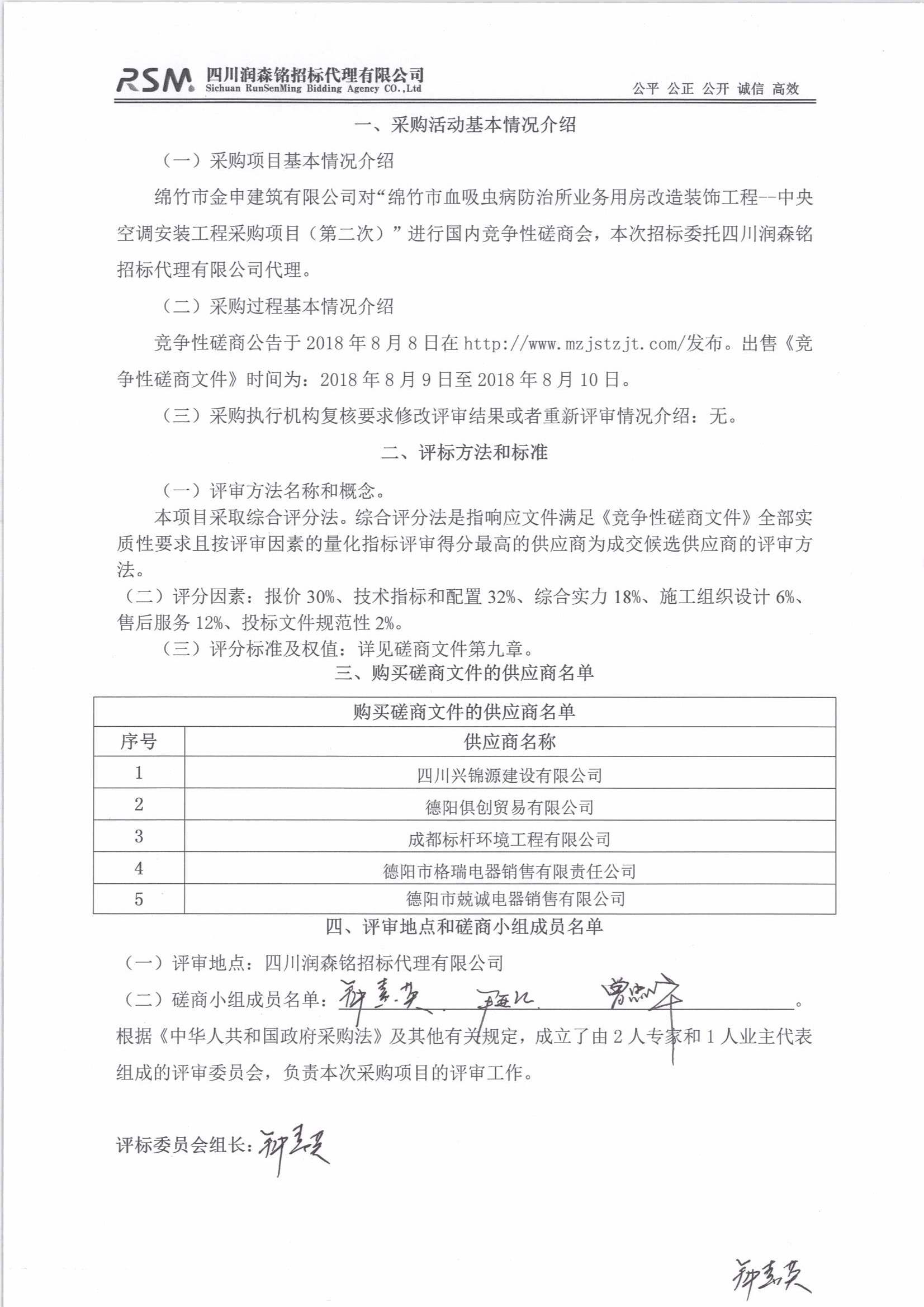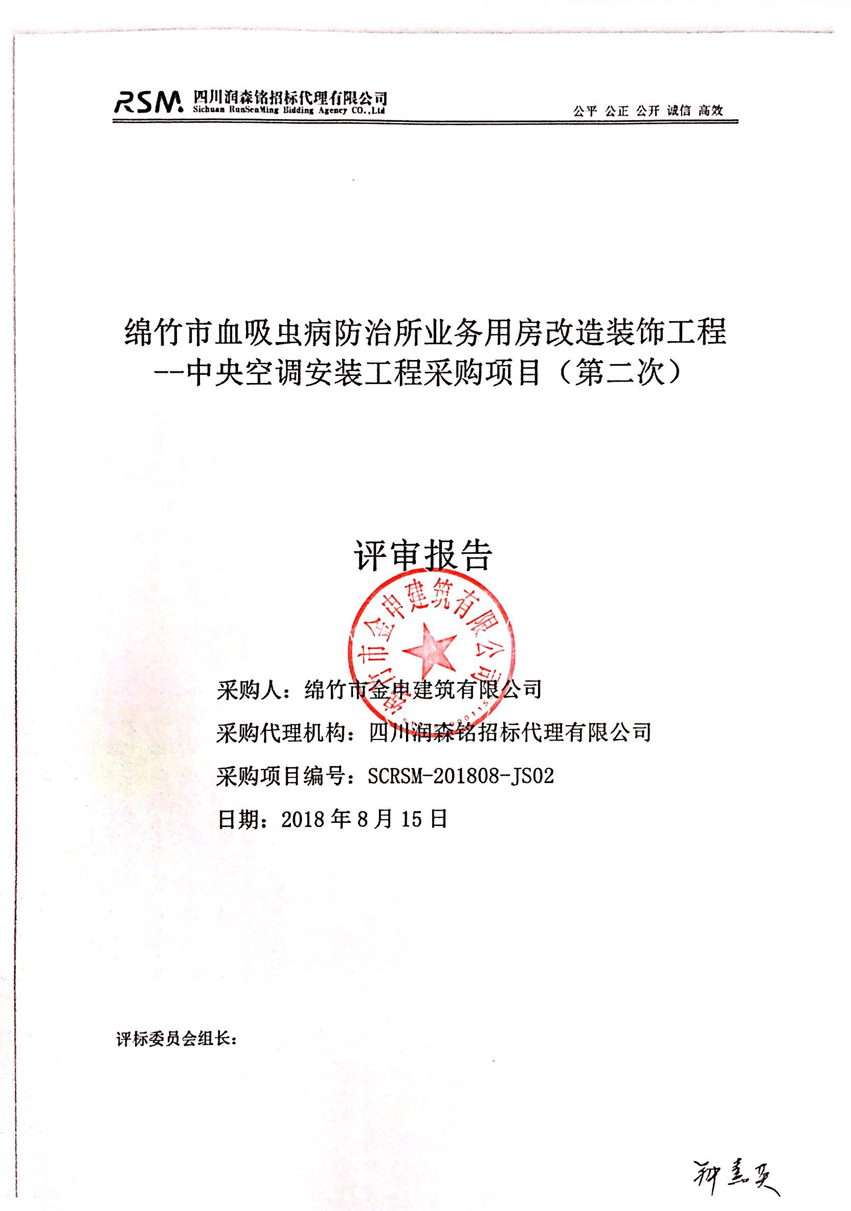 市血防所改造工程—中央空調安裝采購(第二次)評審報告