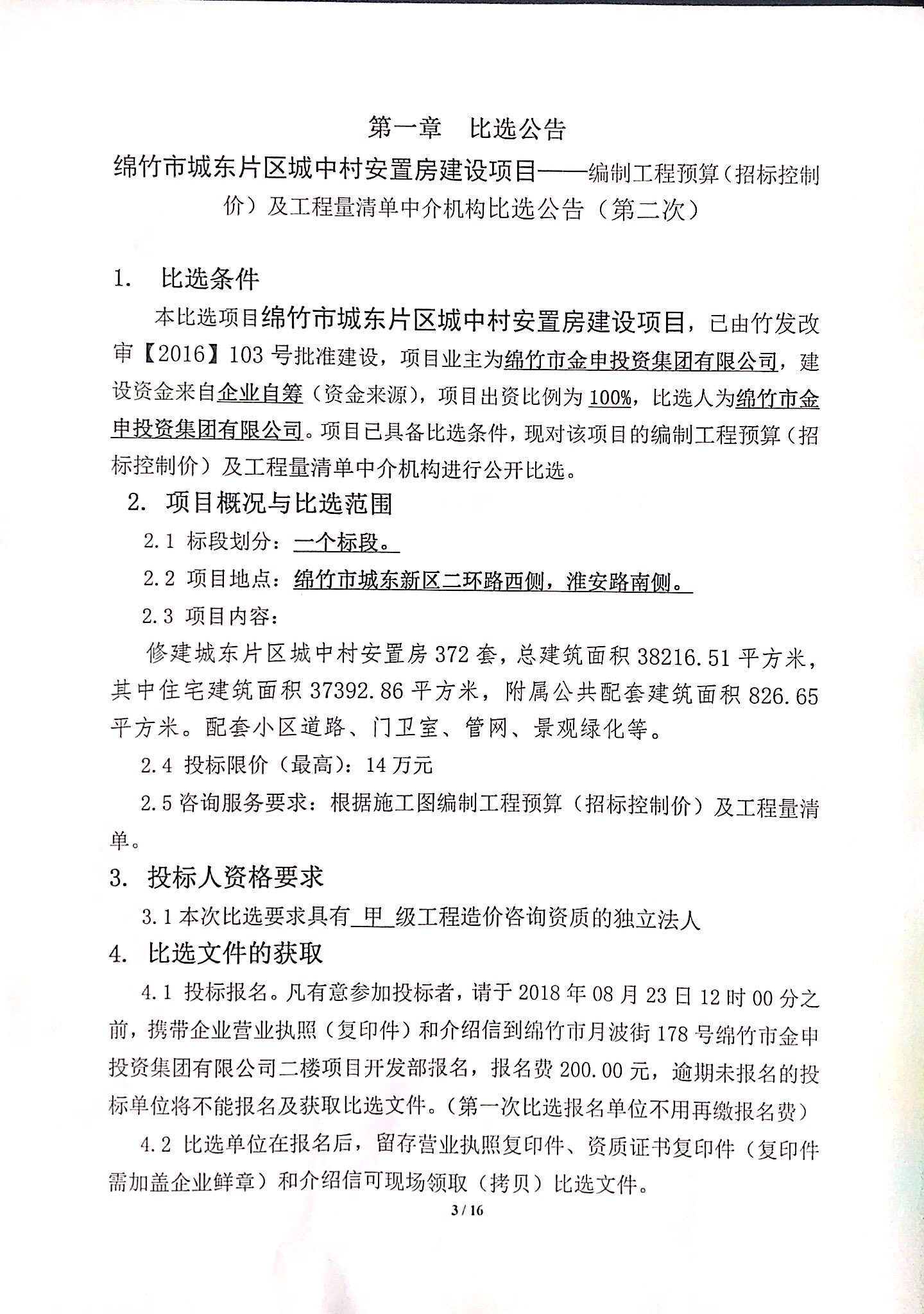 市城東新區城中村安置房項目比選公告(第二次)