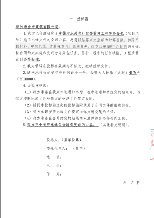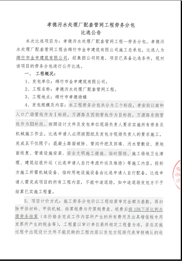 孝德污水處理廠(chǎng)配套管網(wǎng)工程勞務(wù)分包比選公告
