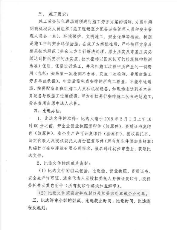 成新藥玻臨時(shí)道路建設工程勞務(wù)比選公告