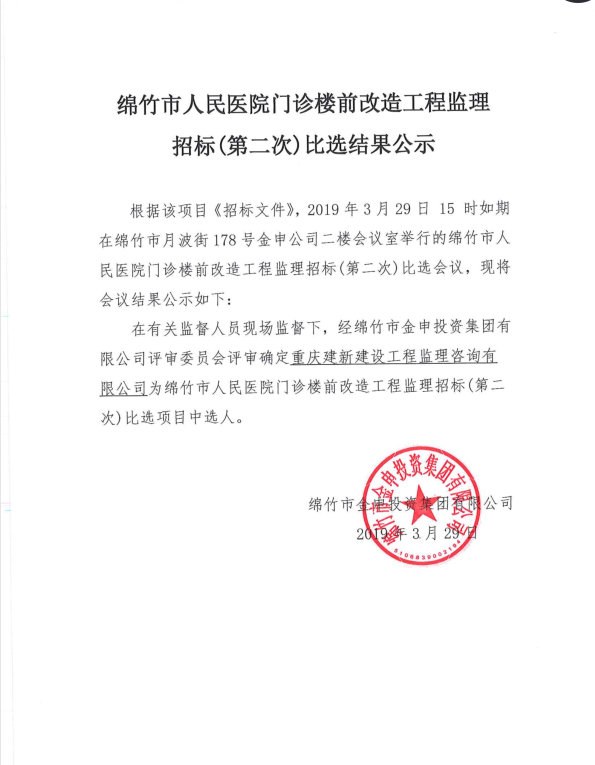 市人民醫院廣場(chǎng)改造工程監理(第二次)比選結果公示