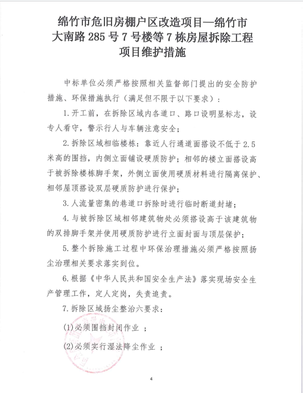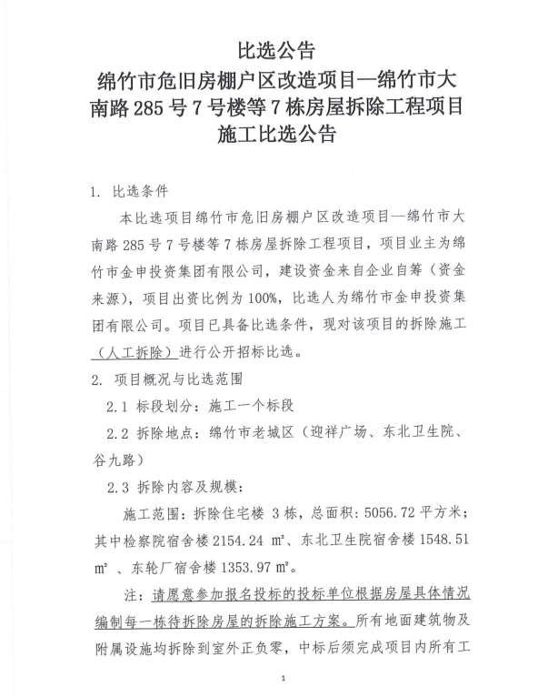 市大南路285號7號樓等7棟房屋拆除工程項目施工比選公告