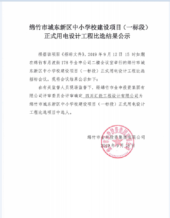 市城東小學(xué)建設項目(一標段)正式用電設計比選結果公示