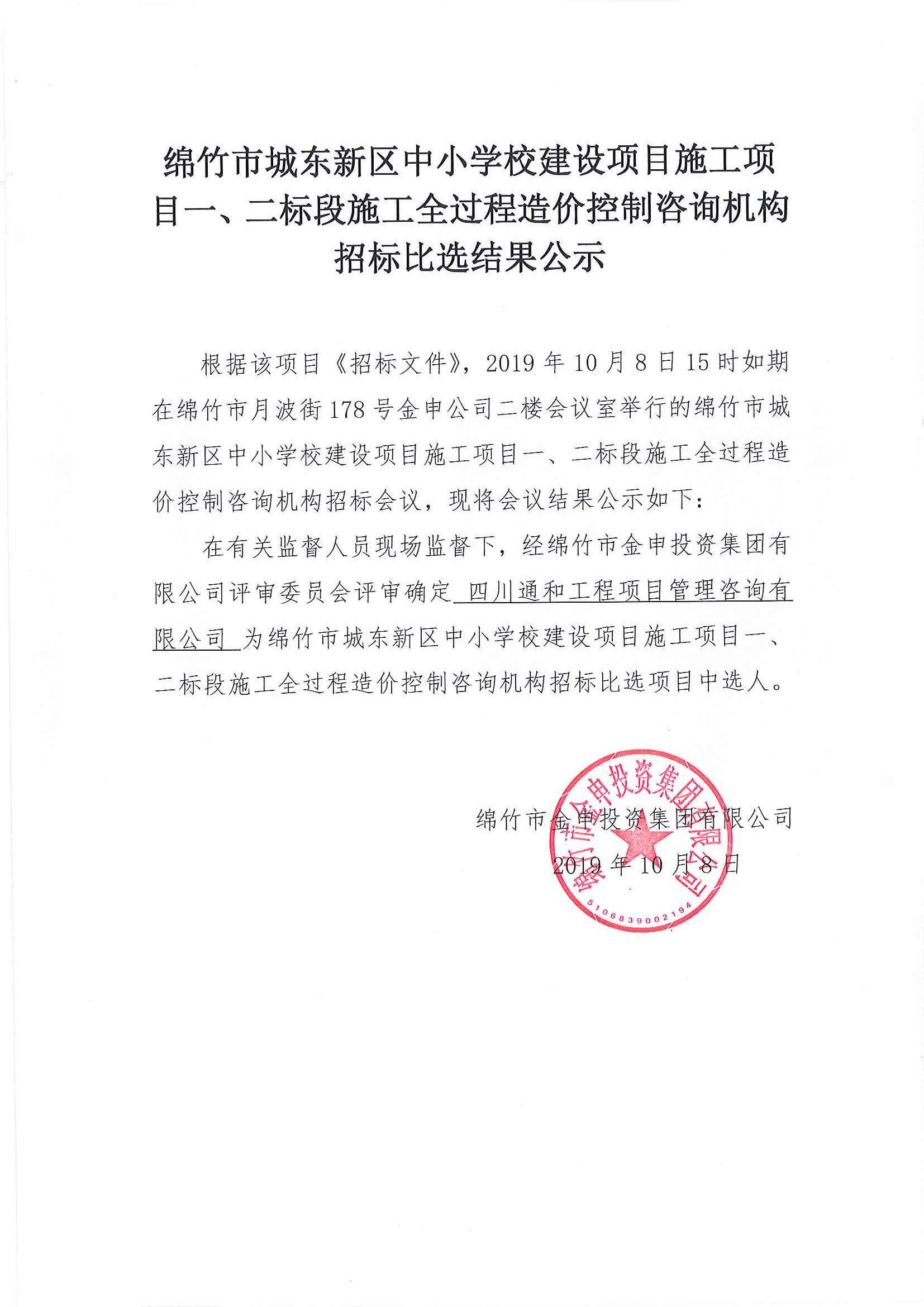 城東中小學(xué)校項目一、二標段造價(jià)控制咨詢(xún)比選結果公示
