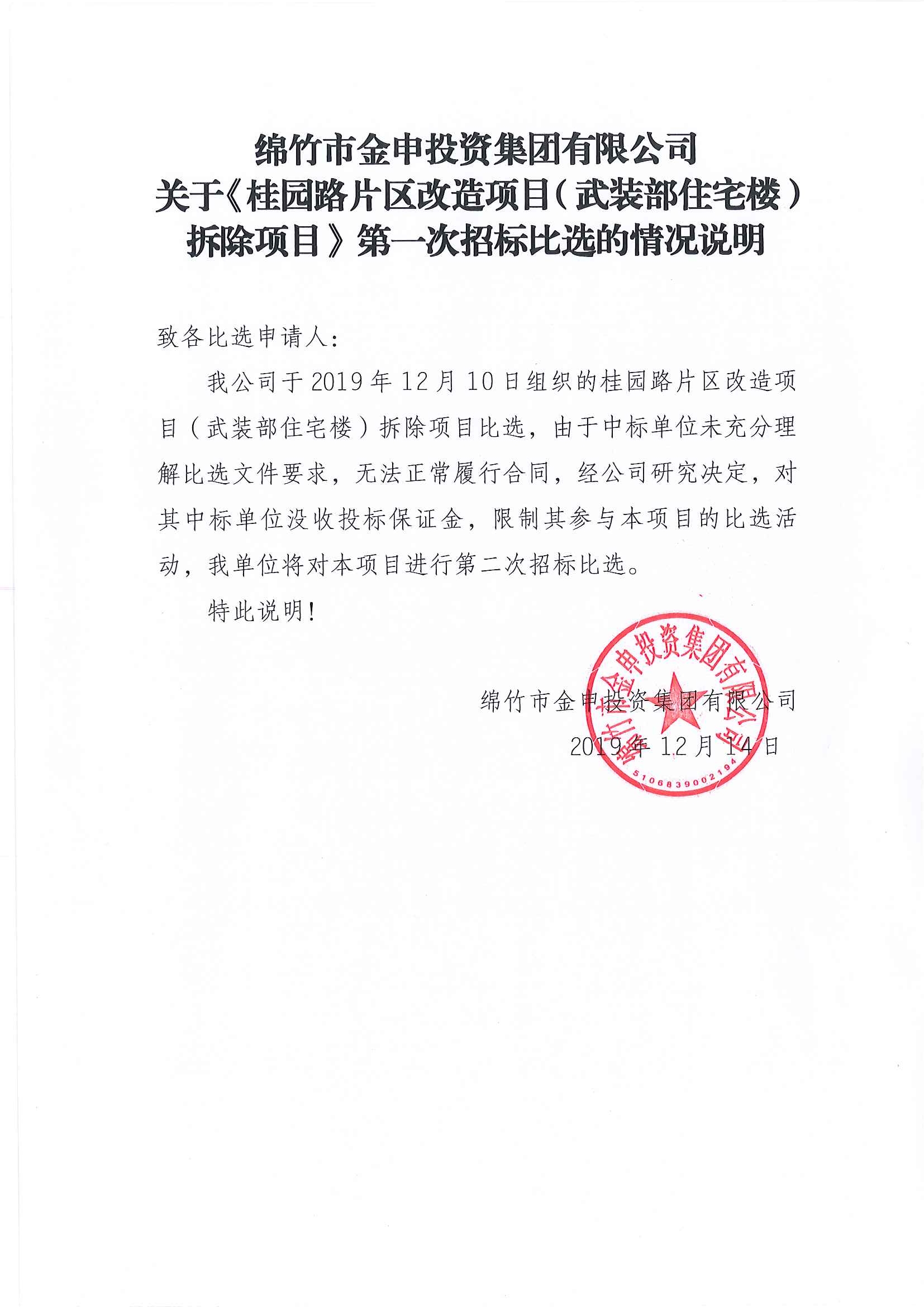 關(guān)于桂園路片區改造項目第一次招標比選的情況說(shuō)明