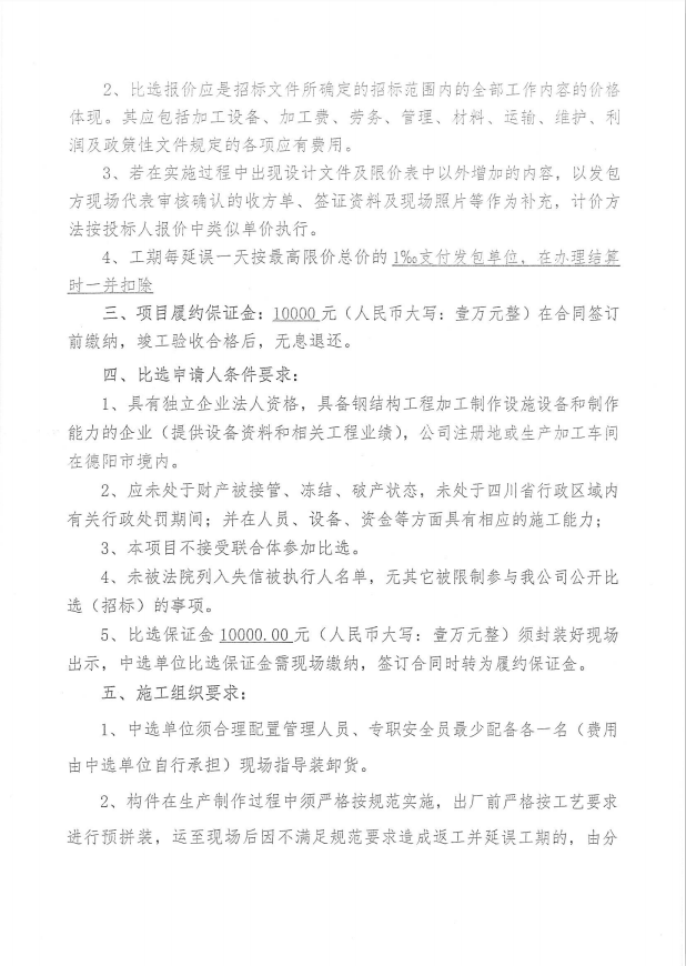 新建檢測車(chē)間鋼結構制作專(zhuān)業(yè)分包比選公告