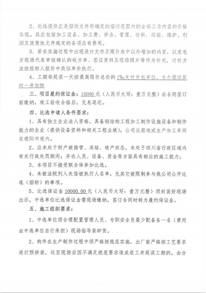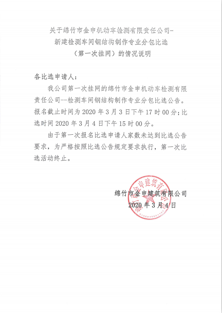 新建檢測車(chē)間鋼結構制作專(zhuān)業(yè)分包比選公告(第二次比選)