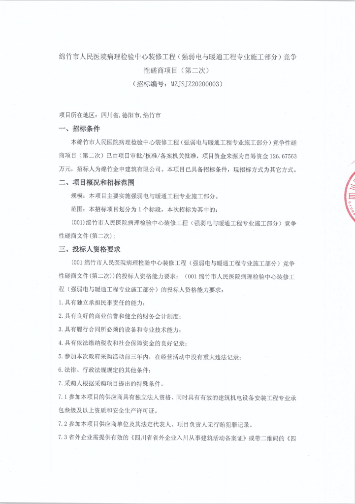 市醫院病理檢驗中心(強弱電工程)競爭性磋商項目二次公告