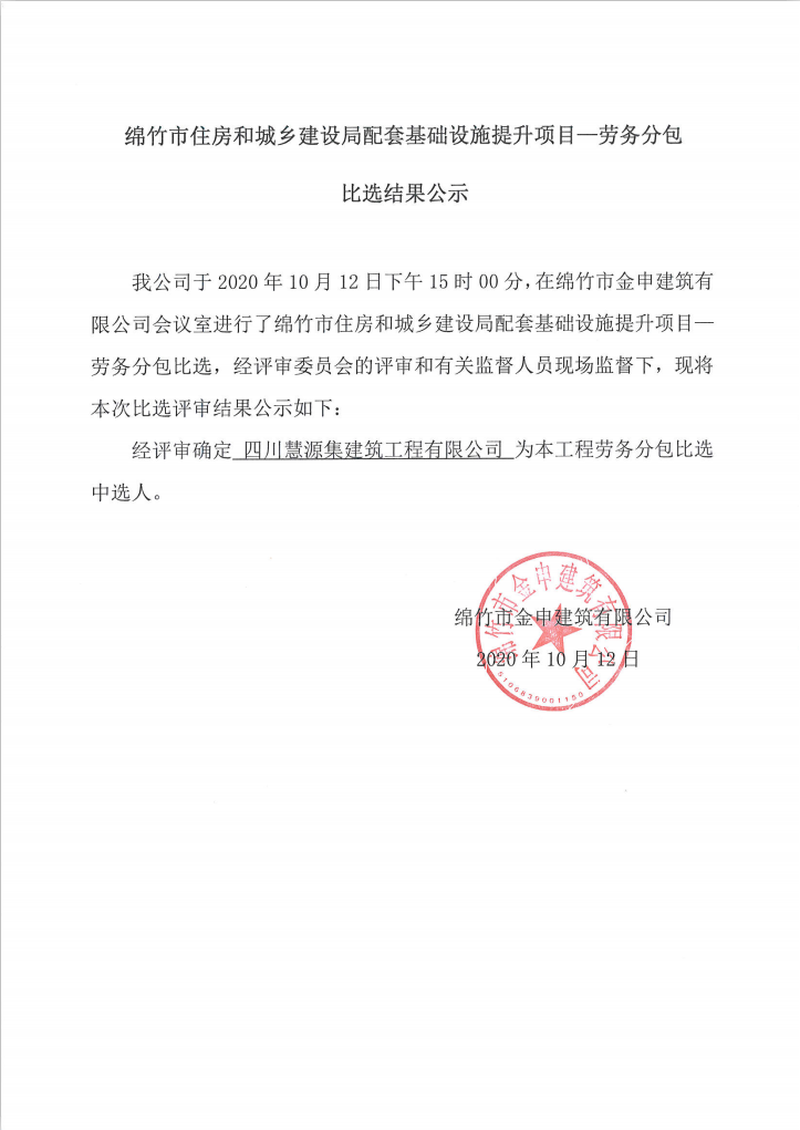 市住建局配套基礎設施提升項目—勞務(wù)分包比選結果公示