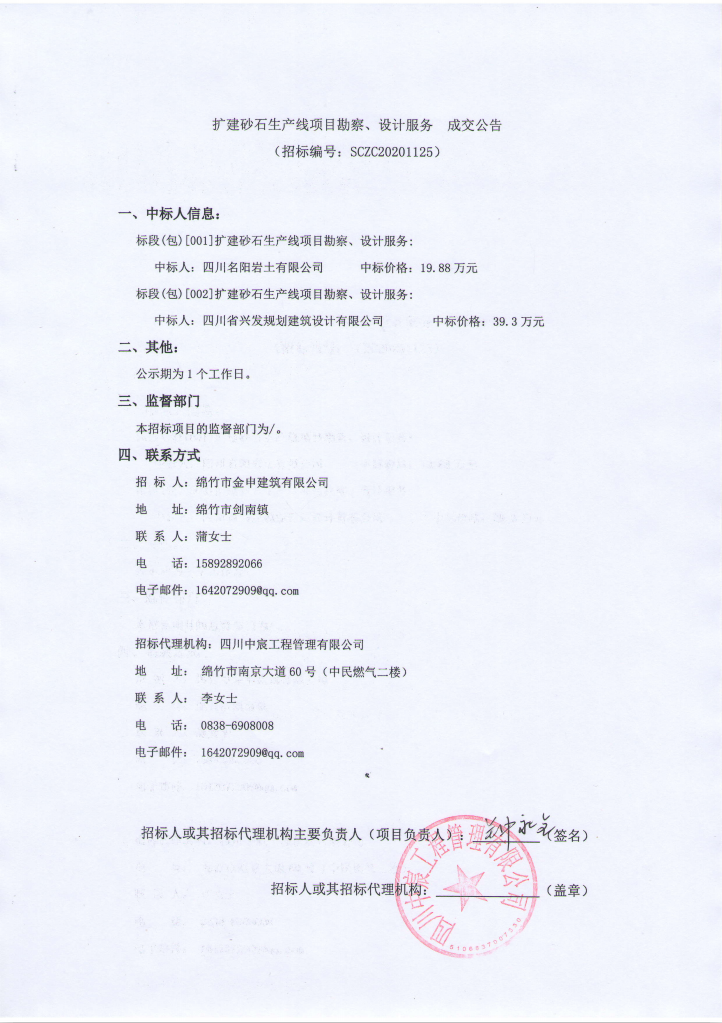 擴建砂石生產(chǎn)線(xiàn)項目勘察、設計服務(wù)成交公告