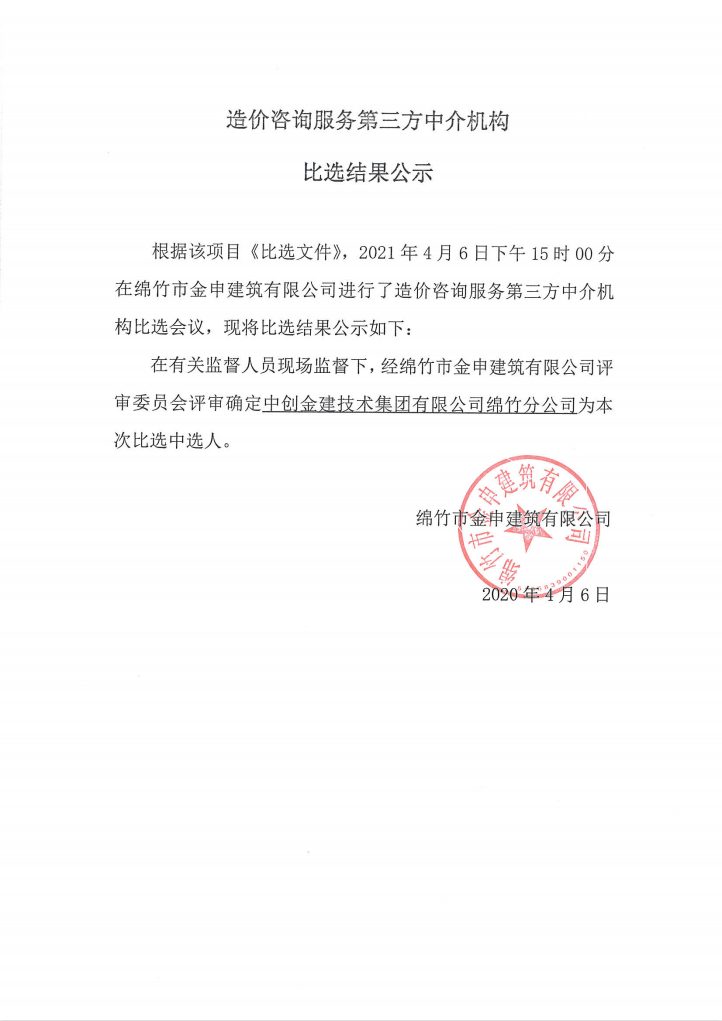 造價(jià)咨詢(xún)服務(wù)第三方中介機構比選結果公示
