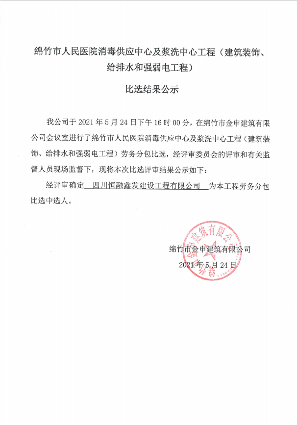 市人民醫院消毒供應中心及漿洗中心工程比選結果公示