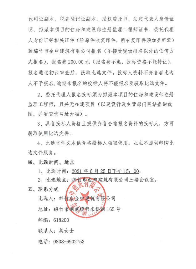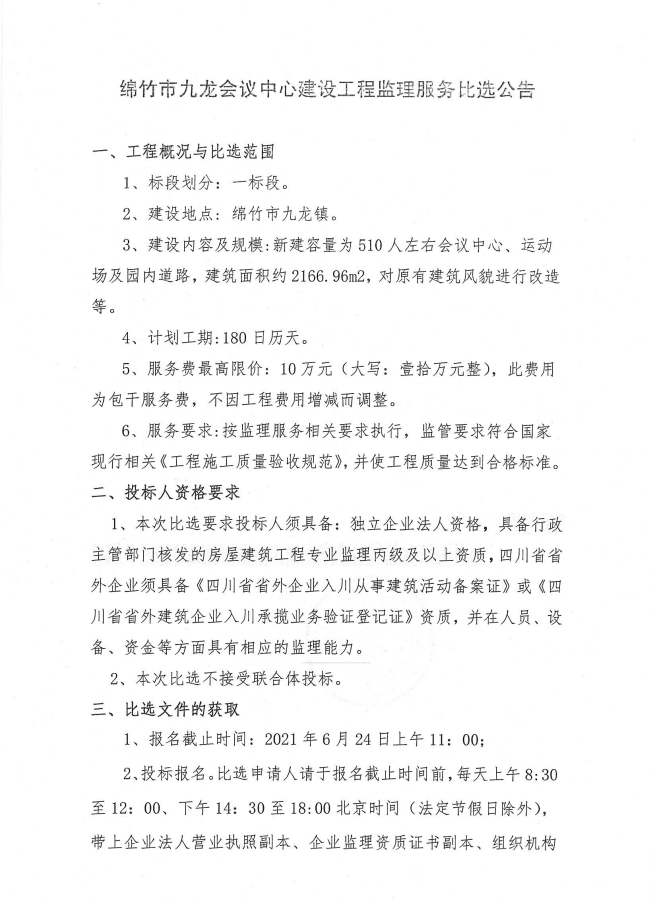 綿竹市九龍會(huì )議中心建設工程監理服務(wù)比選公告
