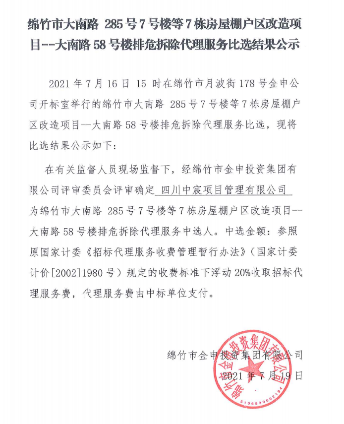 排危拆除代理服務(wù)比選結果公示