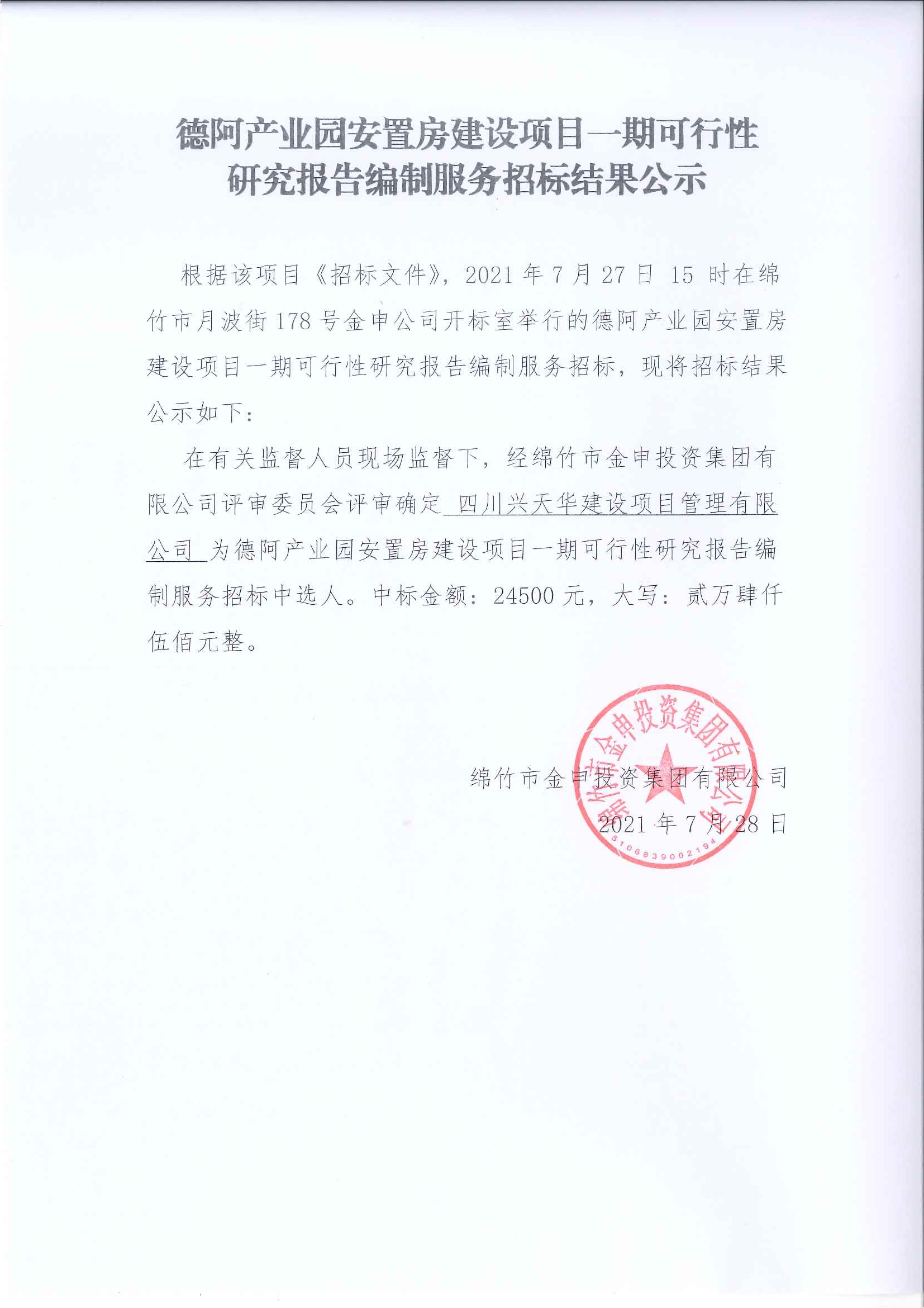 德阿產(chǎn)業(yè)園安置房項目一期可研報告編制服務(wù)招標結果公示
