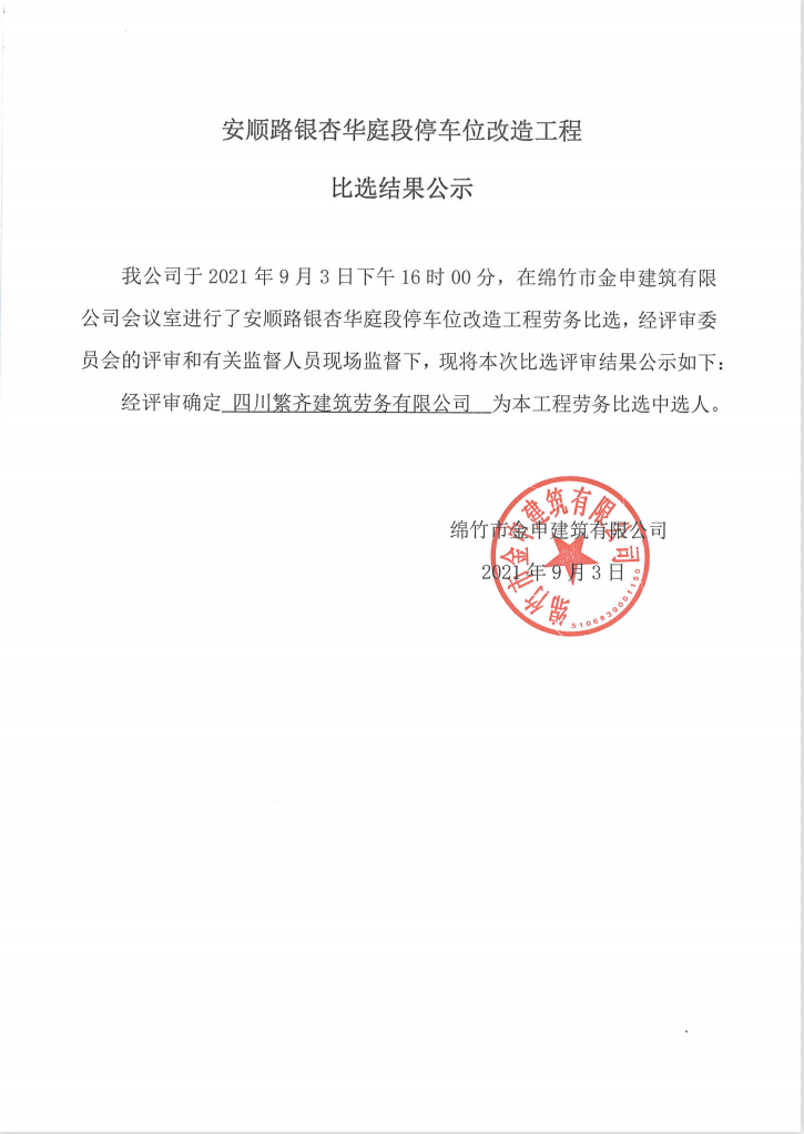 安順路銀杏華庭段停車(chē)位改造工程比選結果公示