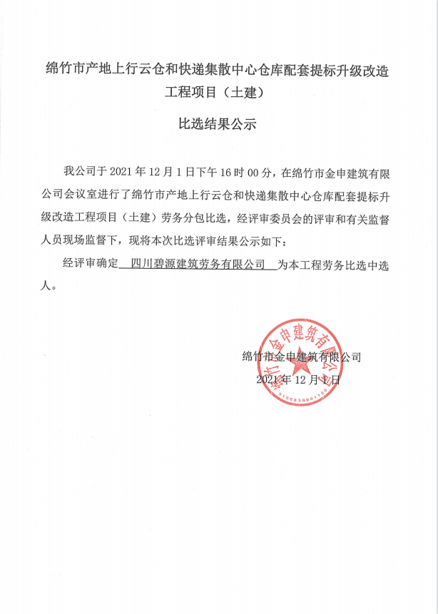 倉庫配套提標升級改造工程項目(土建)結果公告