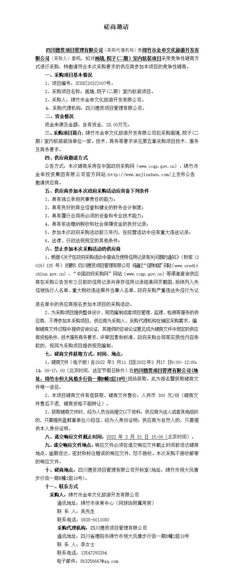 畫(huà)境.院子(二期)室內軟裝項目磋商邀請公告