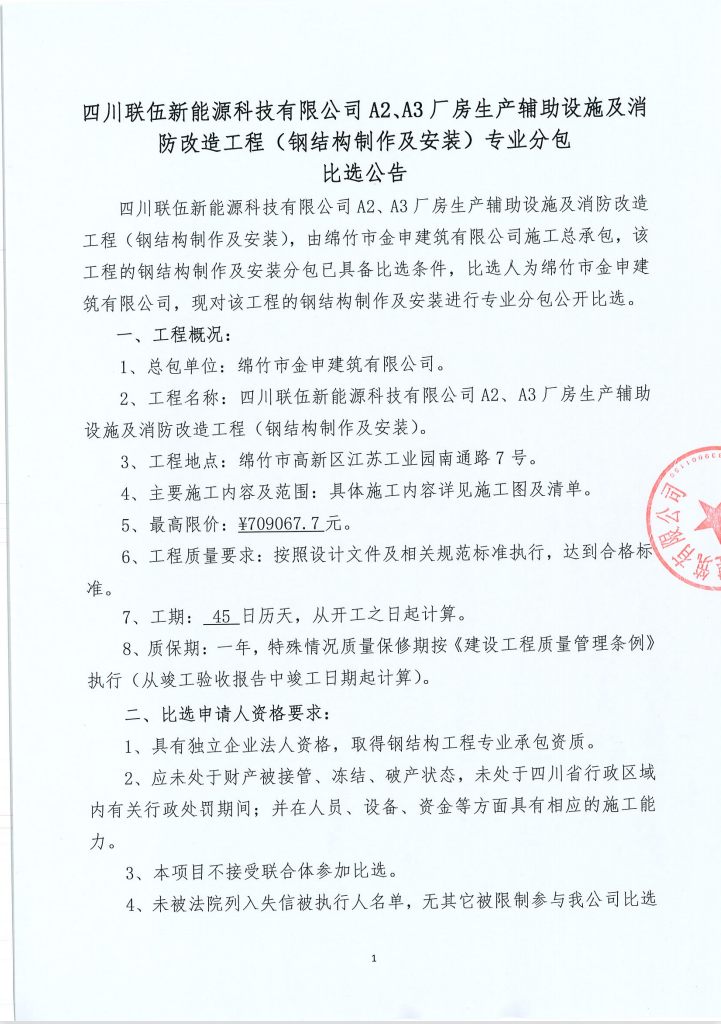 新能源公司改造工程(鋼結構制作與安裝)比選公告