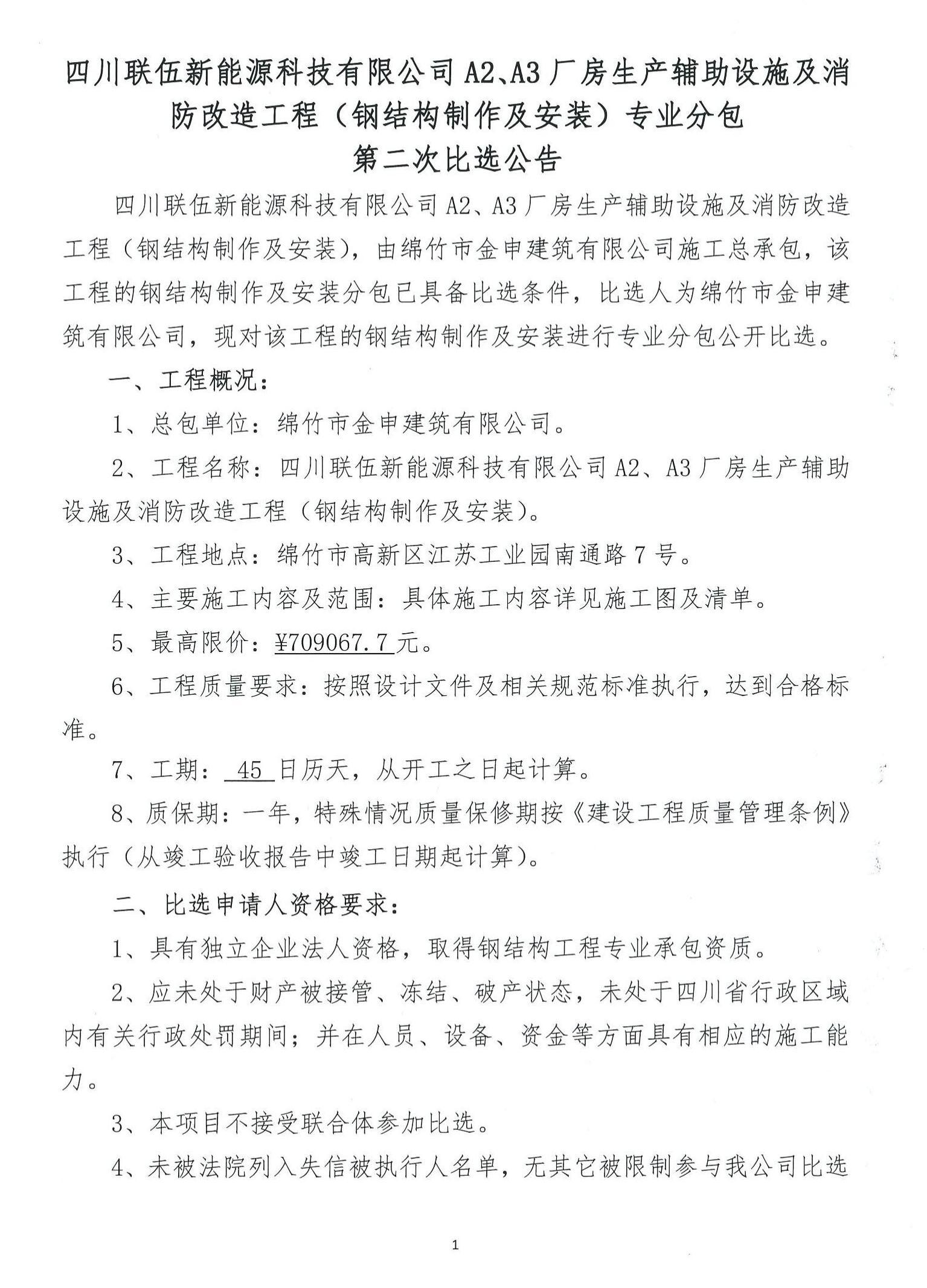 新能源公司改造工程(鋼結構制作與安裝)第二次比選公告