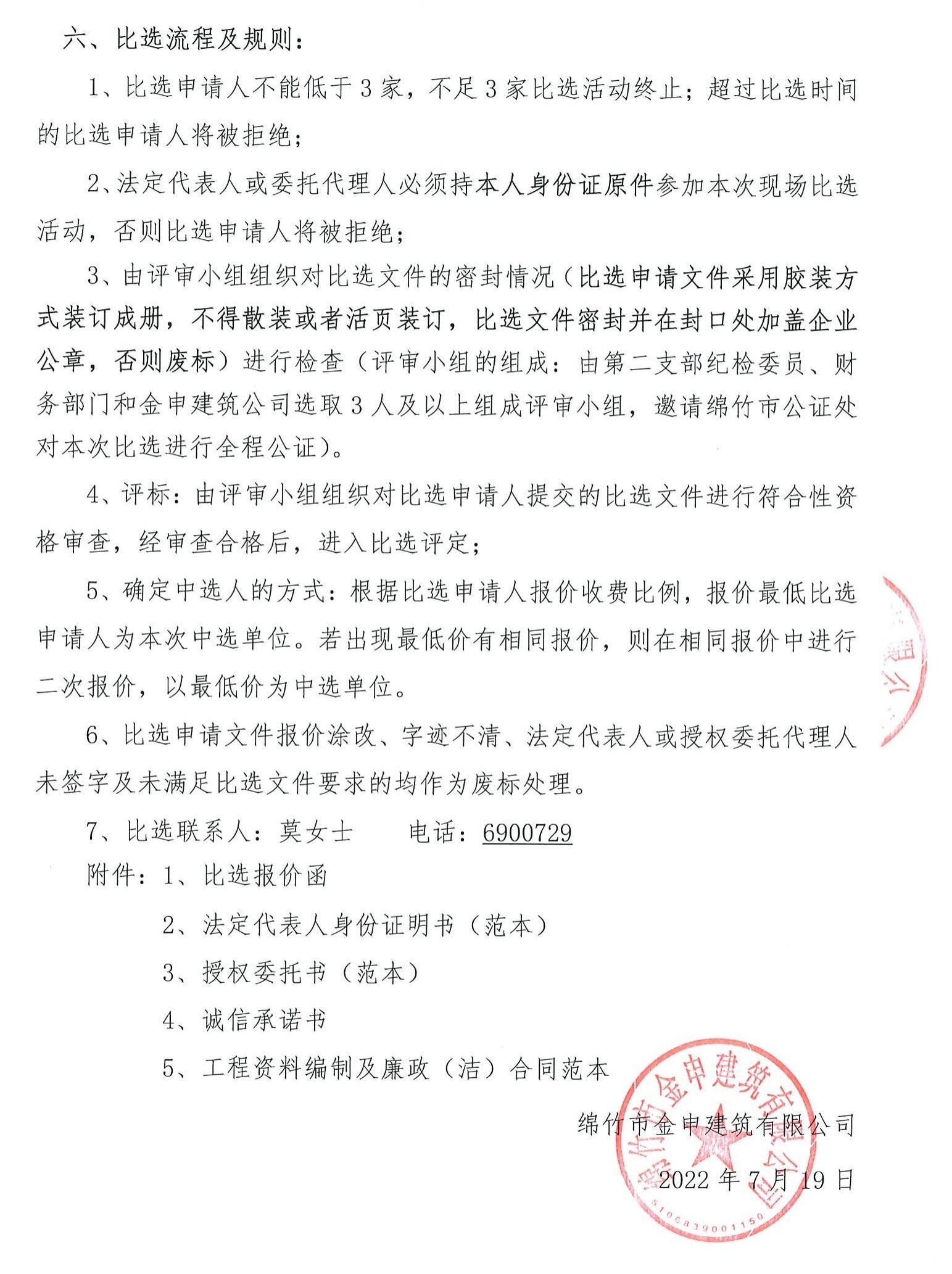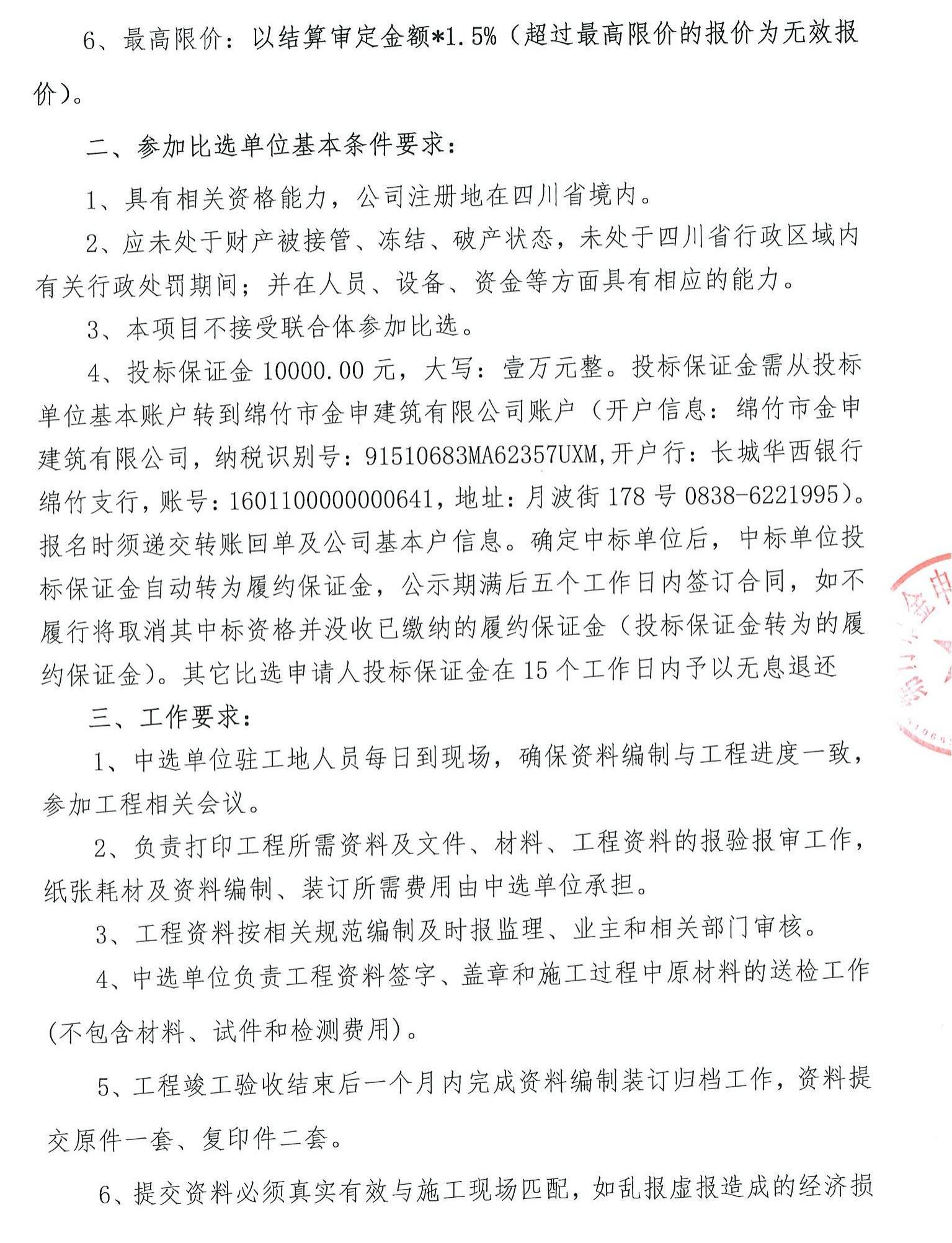 工程資料編制服務(wù)第三方中介機構征集(第二次)比選公告
