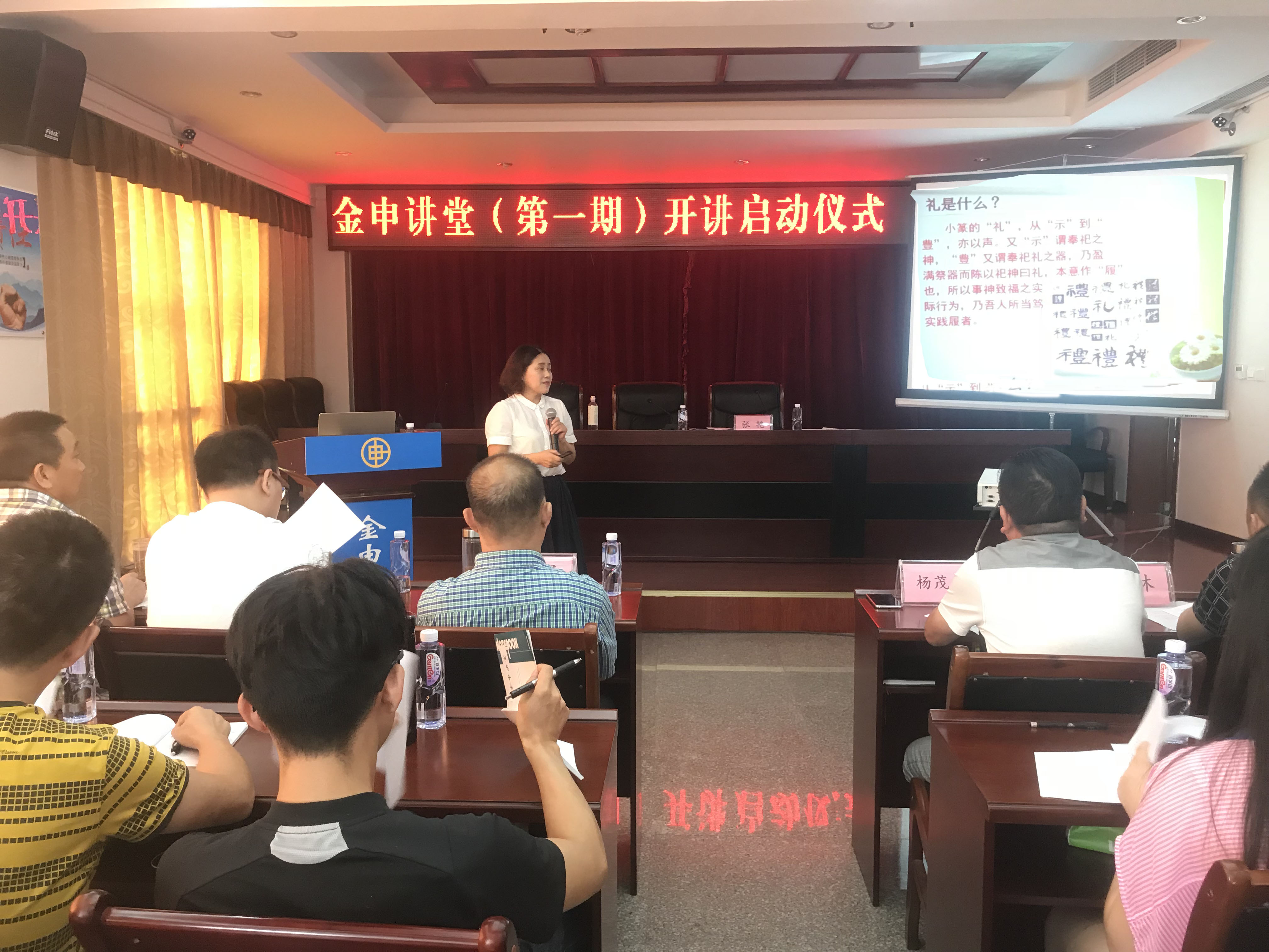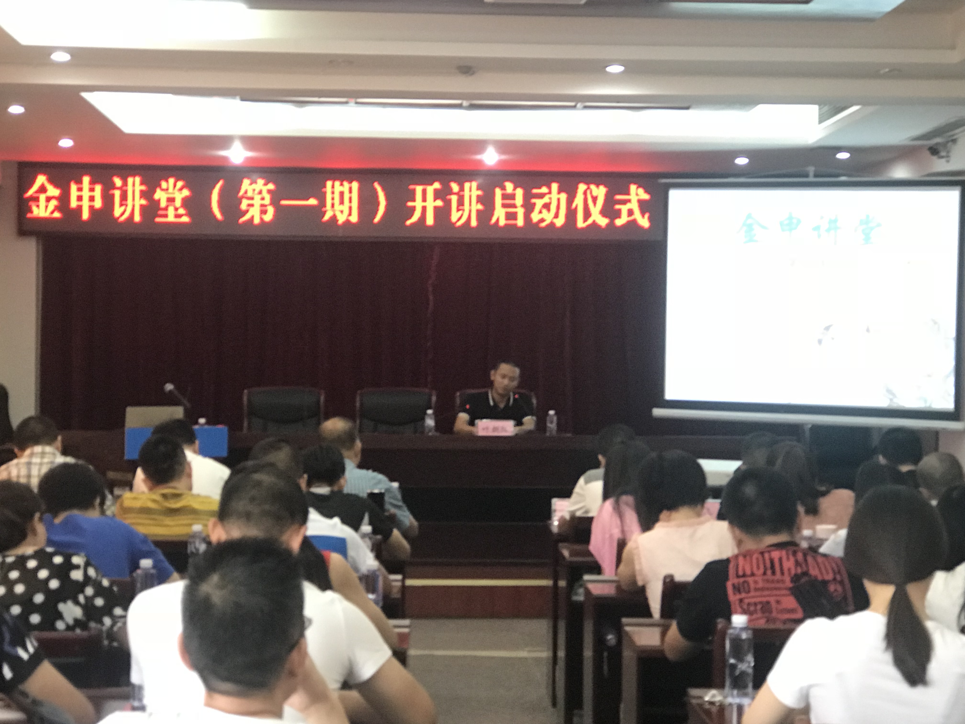 8年8月17日,在集團公司總部三樓會(huì )議室,“金申講堂”(第一期)正式啟動(dòng),活動(dòng)由集團公司黨委書(shū)記、董事長(cháng)徐軍主持,集團公司中層及以上干部,各部門(mén)子公司從事文秘工作人員及青年職工共計四十余人參加。